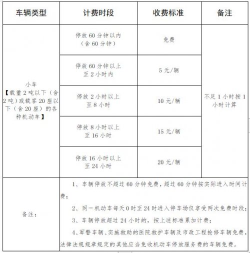 1、车辆停放不超过60分钟免费,超过60分钟按实际进入时间计费;