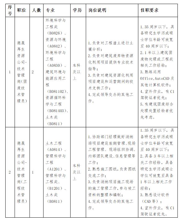 清远市德晟投资集团有限公司成立于2012年,是清远市资产规模最大的市属国有企业。2024年,集团营业收入31.89亿元,净利润2.84亿元。“十四五”时期,德晟集团立足企业功能定位,形成资源能源、城市建设、城市服务三大主业板块,聚焦重点业务累计投资70亿元,引领带动社会投资超300亿元。资源能源板块引入各类资本打造投资开发平台,围绕矿山、石油、燃气、电力、光伏等项目加大投资,打造矿业和能源投资生态圈。城市建设板块涵盖规划、设计、勘测、施工、检测等建筑行业环节,具备一站式服务能力,综合实力走在清远行业前列。城市服务板块提供交通、商业、物业、广告、安保、押运等产品及服务,构建高品质数智化城市服务体系。目前,根据公司经营发展需要,拟招聘3名合同制员工(技术管理岗),公告如下: