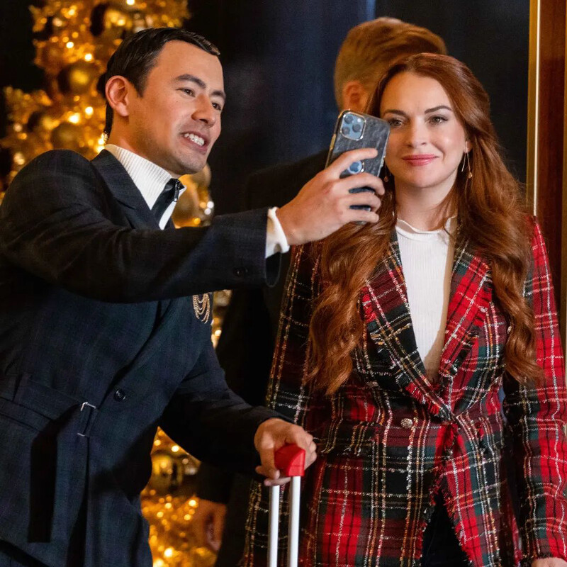 红绿两色绝对是最能代表圣诞节的颜色,今年强势回归的千禧女王琳赛萝涵,最新上档的电影《圣诞倾情》,不仅能看到琳赛萝涵所饰演的饭店千金找到自己的人生意义和真命天子,也能欣赏到她如何翻转给人的幽默形象,像是一袭正红色连身裤搭配经典Gucci红绿条纹太阳眼镜创造的奢华感,或以红、绿、白相间的菱格纹修身西装外套,打造出Effortless Chic风格,以及绿色羽绒夹克搭配红绿格纹围巾展现休闲感,每一套都在提醒我们琳赛萝涵如同百变天后的穿搭能力。
